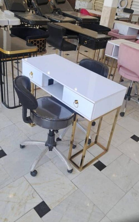 میز ناخن دو کشو هایگلاس پایه فورتیک