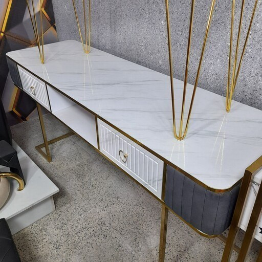 میز ناخن بغل پارچه دو نفره سفید طرح پایه فورتیک سنگ