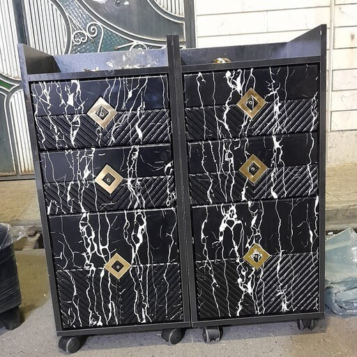 ترولی چوبی آرایشگاهی طرح سنگ مشکی سفید