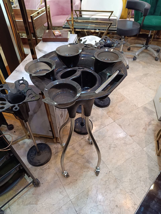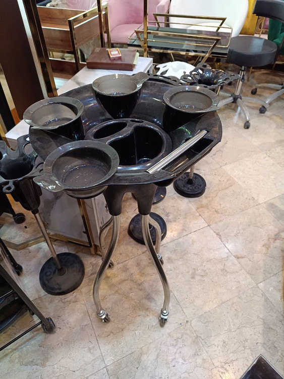 ترولی آرایشگاهی خرچنگی مناسب رنگ و دکولوره داره کاسه پلاستیکی با پایه های استیل